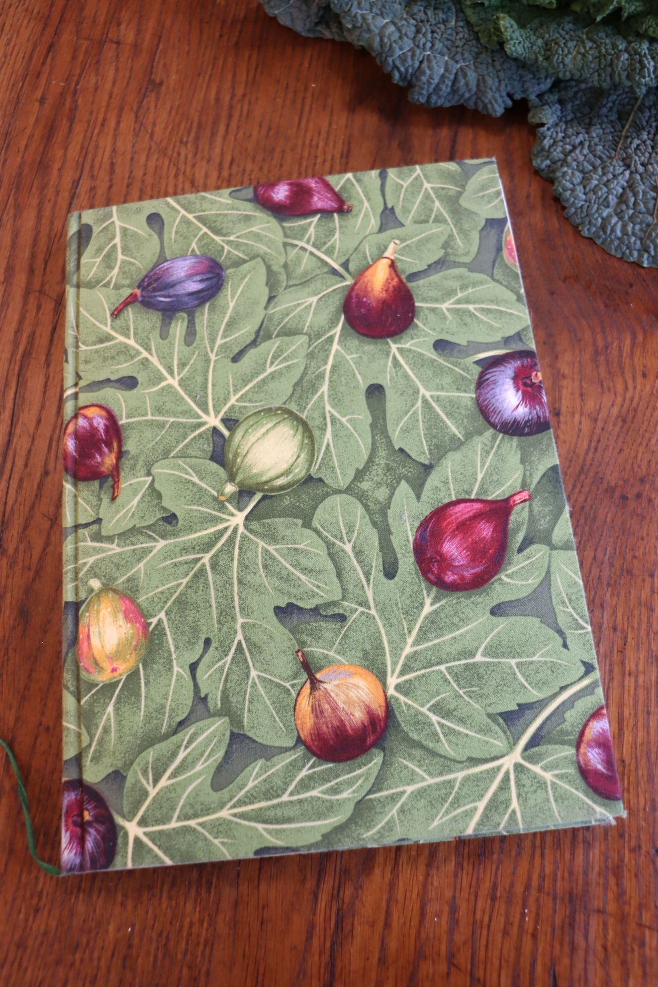 Handgebunden (natürlich) im End-80-er-Design. Es steht in der Küche, bei den Kochbüchern, und wird stetig befüllt mit Rezepten, die mir gerade so einfallen, die mir liebe Menschen überlassen haben, oder die ich sooo lecker fand. Es wird öfter mal aus dem Regal geholt, um etwas nachzuschlagen, ein Rezept zu verwenden und auch wieder und wieder neue Rezepte dazu zu schreiben. So hat es sich über die Jahre gefüllt und es füllt sich weiter. Allerdings habe ich parallel noch mehr Bücher in der Küche am Start. Ein Kochbuch für "Die süßen Seiten des Lebens", darin sind meine Pralinenrezepte, Bonbons, Zuckermassen uvm. Ein weiteres Buch sammelt alle Rezepte zum Thema Feigen, denn wir haben einen sehr großen Feigenbaum im Hof und über den Sommer allerhand zu ernten und zu verarbeiten. Für Kräuter gibt es ebenfalls ein eigenes Buch und meine Teemischungen.