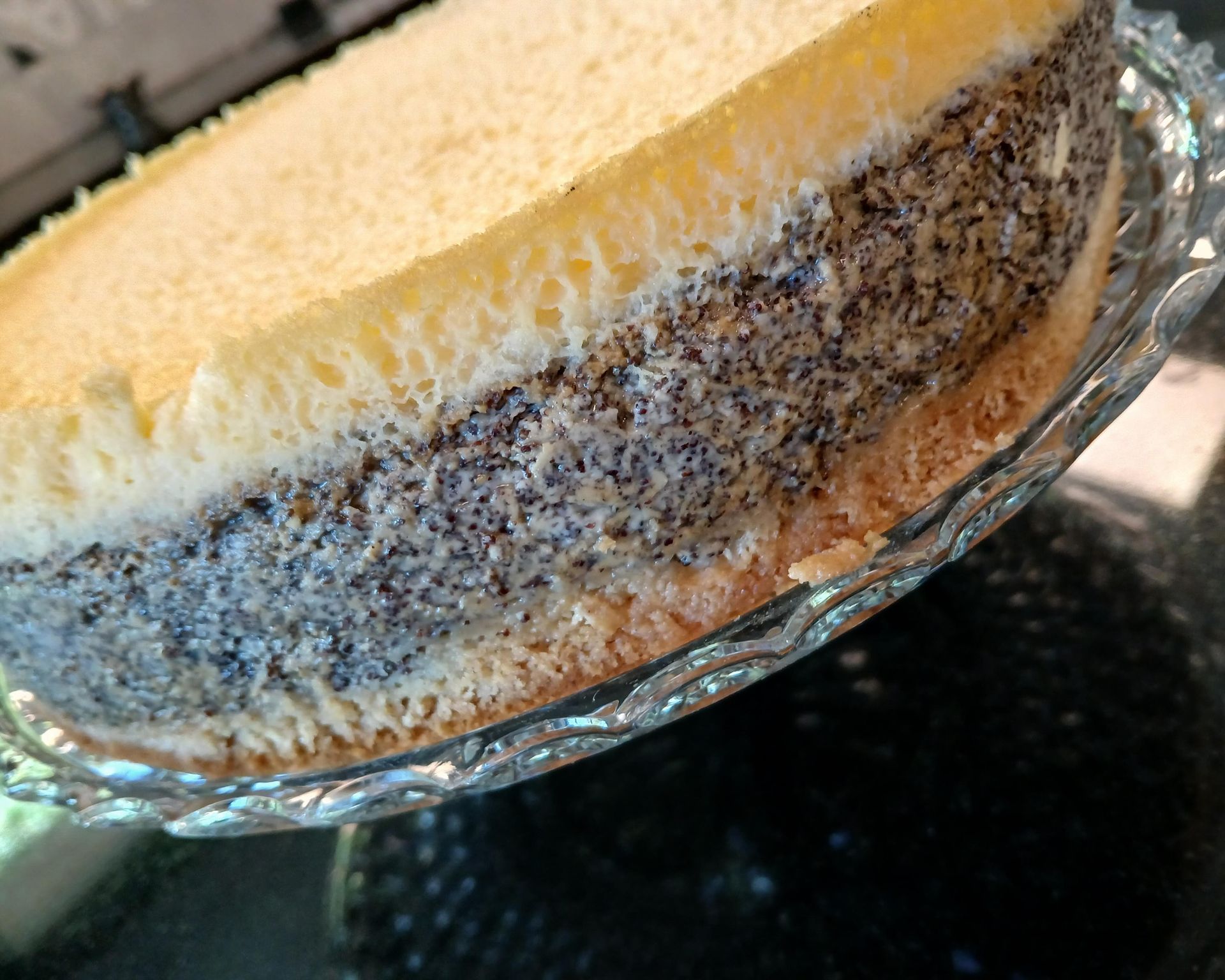 Eine wahre Offenbarung, diese Mohn-Eierschecke! Ich teste ja schon jeden Freitag Kuchenrezepte, an denen ich auch gerne noch etwas “rumfeile”. Für mich lesen sich Rezepte, wie ein Roman oder eine gute Prosa, vielleicht auch bisschen Gedicht oder Krimi, je nach dem. Phantasie, wenn ich keine Zeit zum Abwiegen habe, Thriller und Horror backe ich aus Überzeugung nicht…. Dieses Rezept wurde mir von einer lieben Freundin aus Hamburg empfohlen, deren Geschmacksnerven noch eindeutige Spuren von Pfalz enthalten (sie kimmt nämlich aus de Palz). Ich habe es gerade noch geschafft, den Kuchen als Ganzes zu fotografieren, denn schnell war er weggeputzt. Verdientermaßen, denn er ist ultralecker und für Mohnfans ein himmlisches Vergnügen, saftig und cremig zugleich. Ein paar Kalorien hat er zugegebenermaßen auch, aber die müssen ja auch von was leben. Hier jetzt das Rezept Für den Boden: 150 g Mehl mit 75 g Butter, 80 g Zucker, 1 Ei und 2 TL Backpulver zu einem Teig verarbeiten. Er wird recht zäh, also alles O.K. Ich nehme dazu einen Knethaken und den fertigen Teig streiche mit einem Teigschaber (Schlesinger) auf den Boden einer Springform, die ihr vorher gut gefettet haben solltet, oder ein Backpapier unterlegt. Den Rand der Springform dann aber trotzdem fetten. Den Backofen auf 180°C Ober-/Unterhitze vorheizen, 26cm-Springform, evtl. Backpapier. Die Füllung: Aus ½ l Milch und einem Päckchen Vanillepudding ohne Zucker einen Pudding kochen und dazu 2 Pack Mohnback (kann man im Backregal fertig gemischt kaufen) und 2 Becher Schmand unterrühren. Die Fülle auf den Teigboden in die Springform füllen und etwas glatt streichen. Die ersten zwei Schichten jetzt in den Ofen geben und 30 Min. backen. In der Zeit den Guss herstellen: 3 Eier trennen. Die Dotter mit 80 g Puderzucker und 1 Becher Schmand gut verrühren Die Eiweiße sehr steif schlagen und unter die Ei-Zucker-Masse heben. Die Eiermasse auf den vorgebackenen Kuchen geben, schön verteilen und weitere 10 - 15 Min. backen. Sollte goldgelb sein. Er sollte erst abkühlen, bevor man ihn aus der Form nimmt und dann mindestens zwei Stunden im Kühlschrank verbringen, bevor man ihn serviert. Dieser Kuchen ist ein Genuss ganz pur, man kann ihn aber auch gut mit frischen Früchten dekorieren oder ein paar in Wein eingeweichte Rosinen in die Mohnfülle schmuggeln. Viel Spaß beim backe un Gude beim esse!